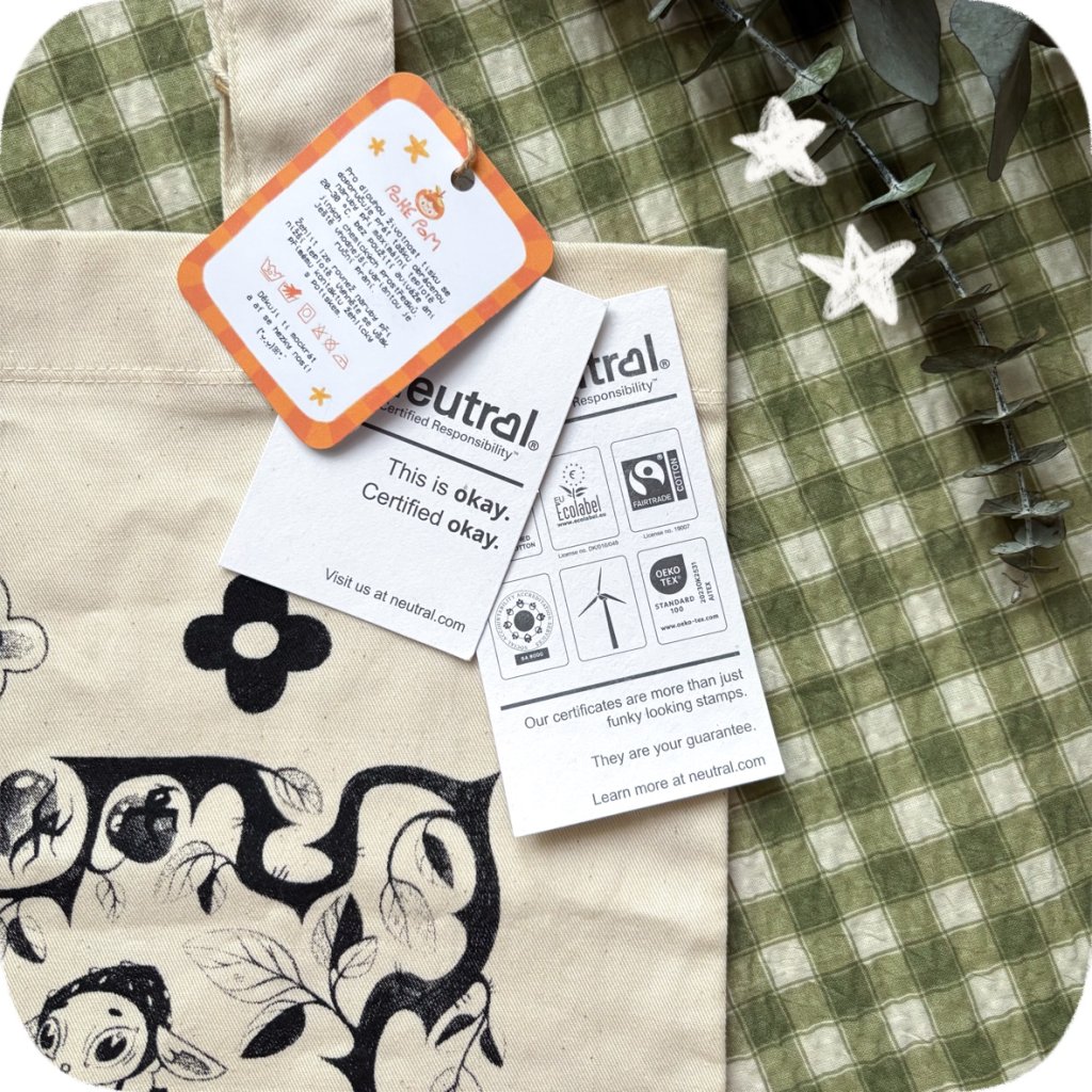 ✿ Je vyrobená ze 100% organické bavlny a nese certifikáty jako Ecolabel, Fairtrade, Oeko-Tex 100 a SA 8000. Všechny tyto certifiace značí, že při každé fázy výroby bylo hleděno na ekologii, dobré podmínky pro pracující a jejich výdělek. Taška je nadále potisknutá zde v ČR.