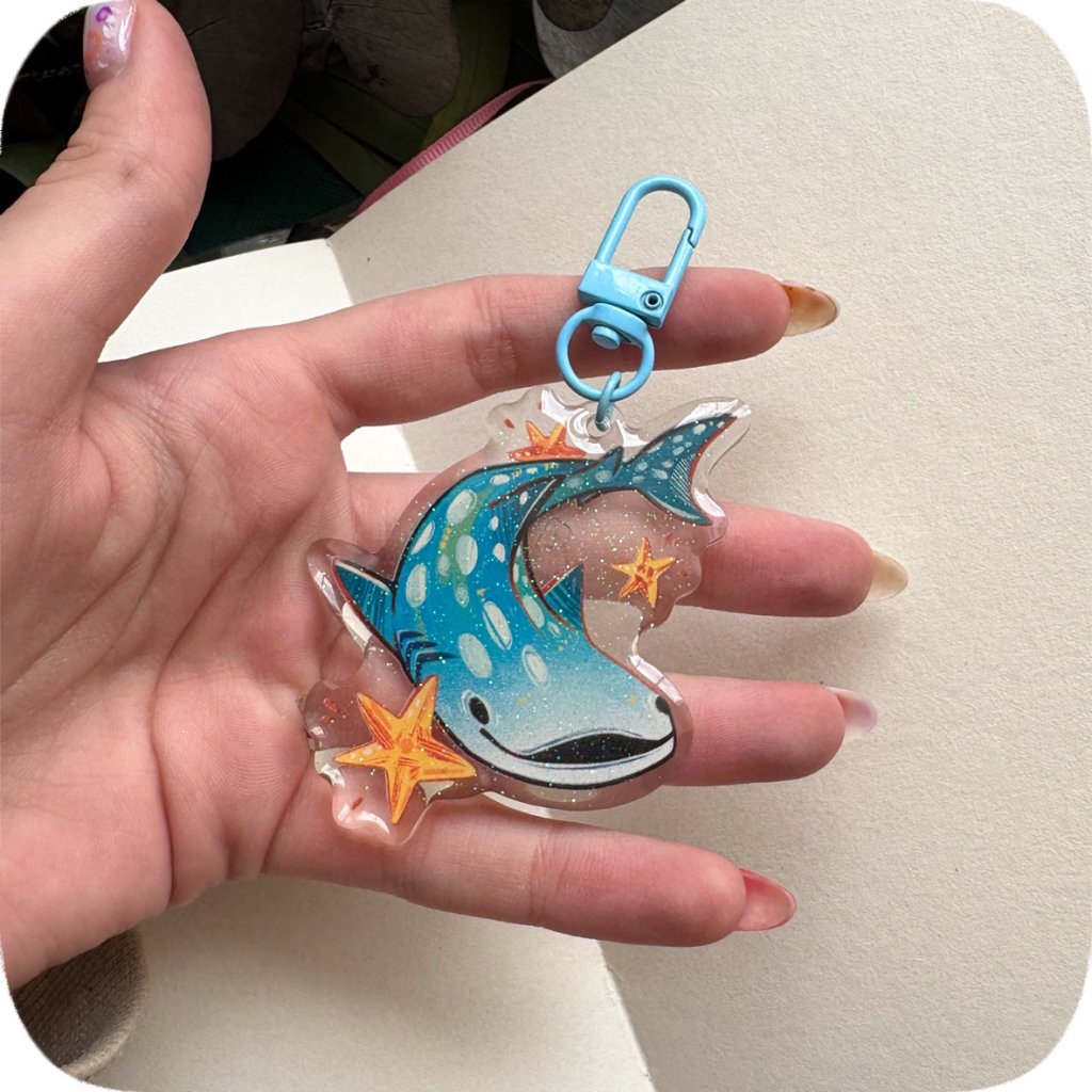 ✿ akrylová klíčenka zalitá třpytkatou pryskyřicí s modrou karabinkou